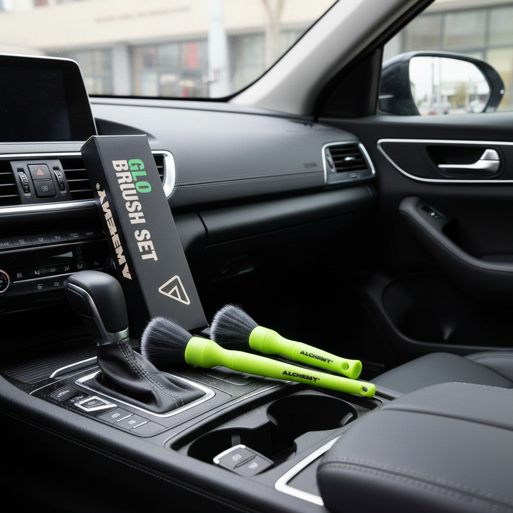 Setul conține două pensule, una mare si una mică, astfel incat sa poti alege care este cea mai bună pentru lucrarea solicitată. Mânerele periei sunt proiectate ergonomic și au o strălucire fluorescentă atunci când sunteți în întuneric, așa că le veți găsi cu ușurință în geanta dvs. de detailing! Pensulele se încarcă atunci când sunt expuse la lumina zilei.